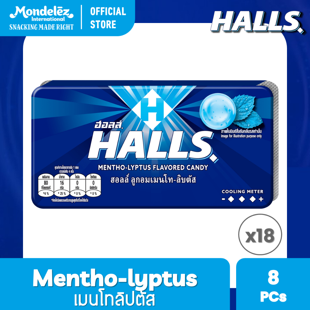 Halls Mentho-Lyptus ฮอลล์ ลูกอมเมนโทลิบตัส แบบแผง 8 เม็ด (22.4 กรัม) แพ็ค 18 แผงร้านแนะนำ