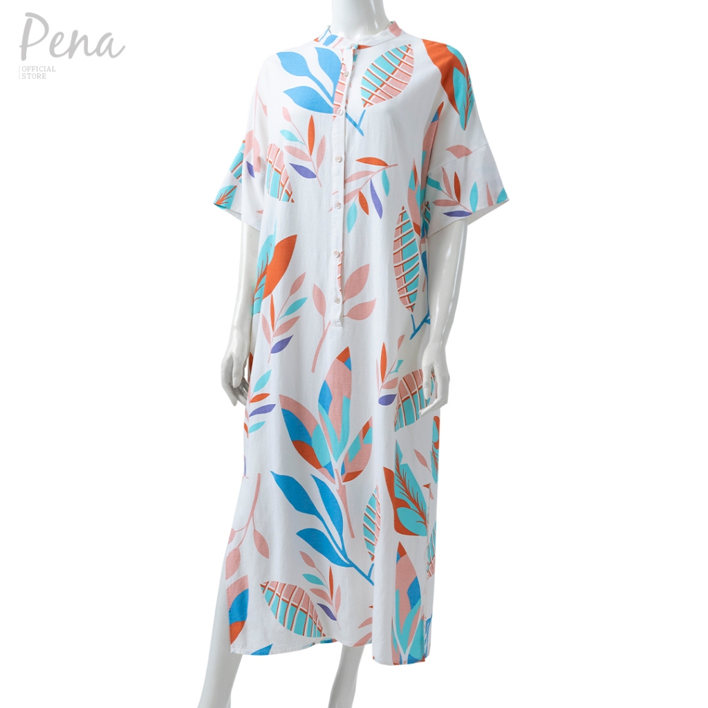 Pena House เดรสยาวทรงหลวม คอจีน แขนสั้น PWDL082402 สบายพลิ้ว ใส่แล้วมีสไตล์ในฤดูร้อน