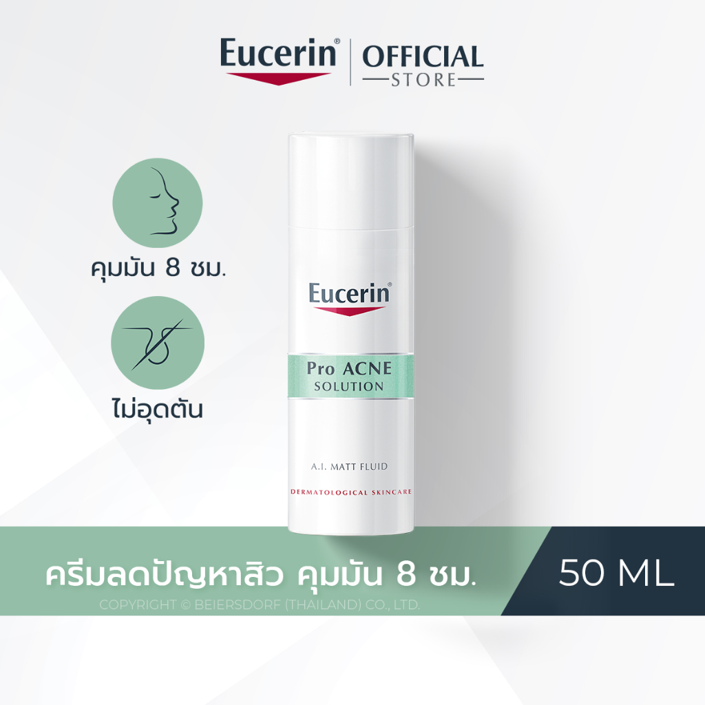 Eucerin Pro ACNE SOLUTION A.I. MATT FLUID 50 ML ยูเซอริน ครีมบำรุงผิวหน้า ลดปัญหาสิว รอยดำ รอยแดง ลดผิวมันร้านแนะนำ 2
